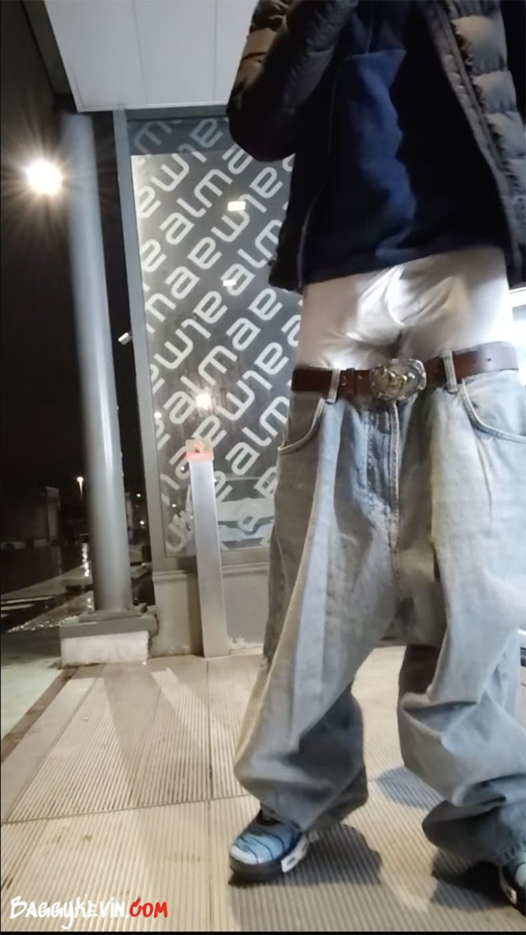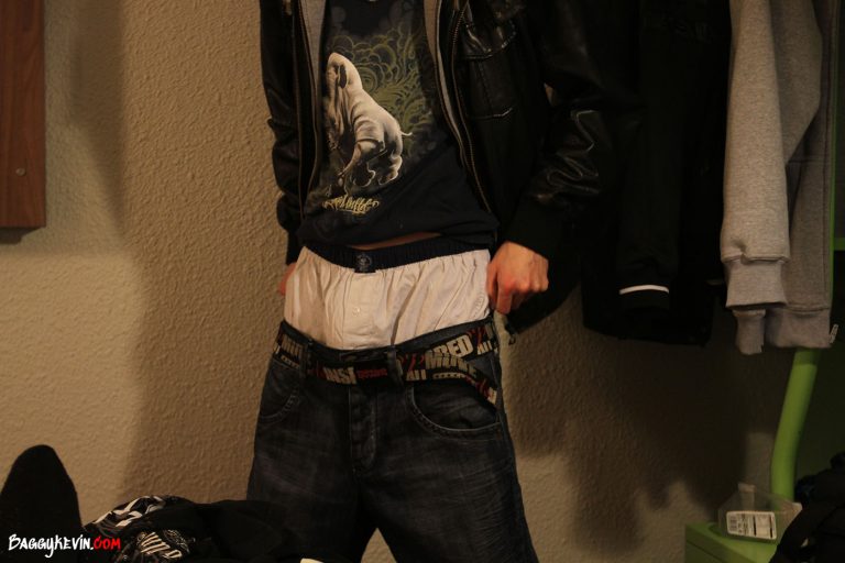 Mini sagging white American Eagle with adidas trackpants, should he make more?